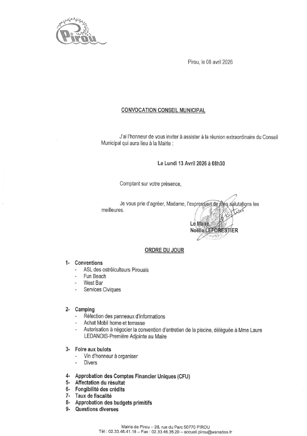 La prochaine réunion du Conseil Municipal aura lieu à la Mairie :