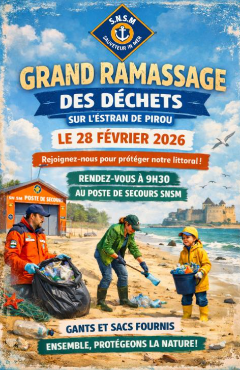 Ramassage de déchets sur l'estran à Pirou le samedi 28/02/2026